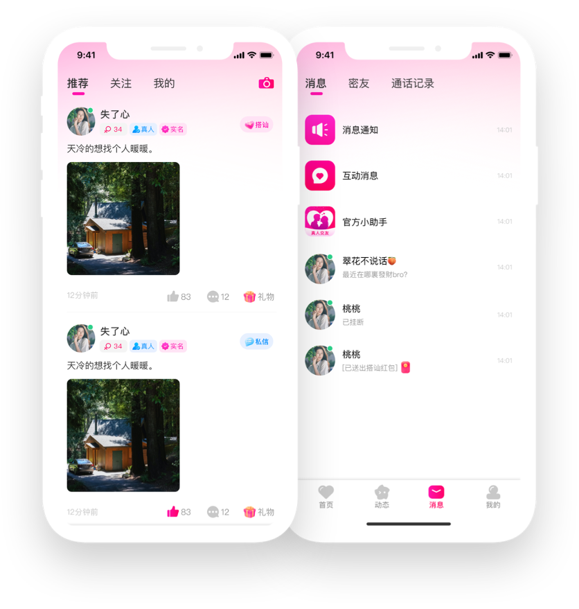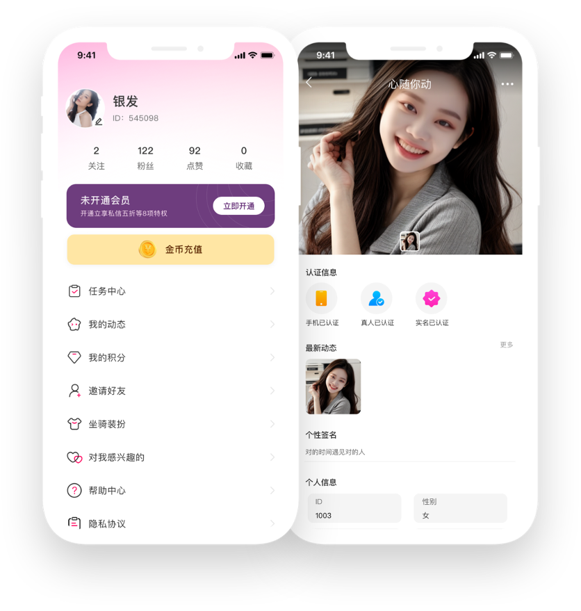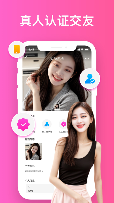 【真人认证】智能AI快速审核用户资料,实名认证双重加码,保障真人聊天。